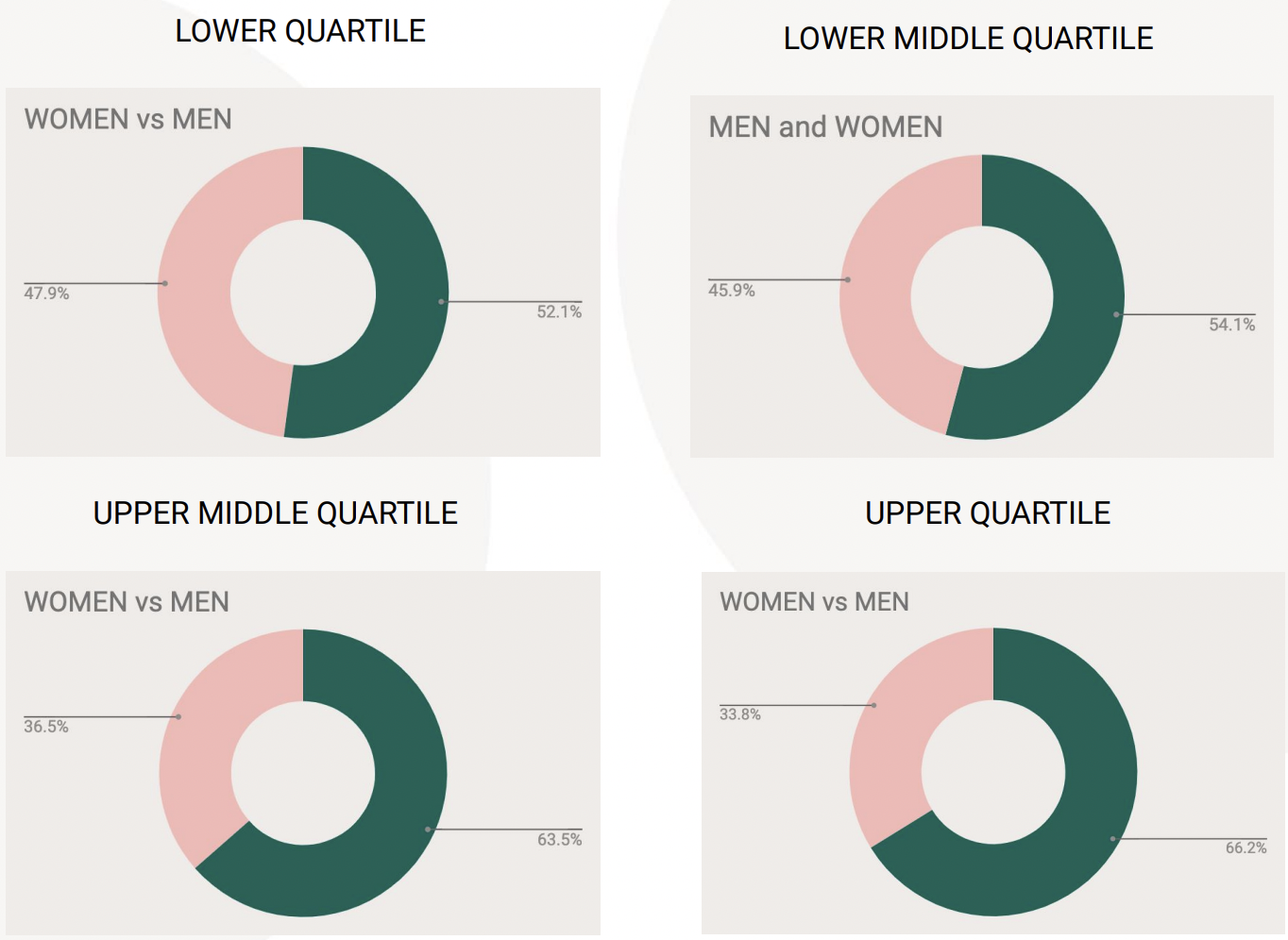 We are really pleased with our gender split in lower and middle quarters. As we grow into a medium sized business, we are committed to increasing female representation in more senior roles which will positively impact the bonus pay gap that currently exists.